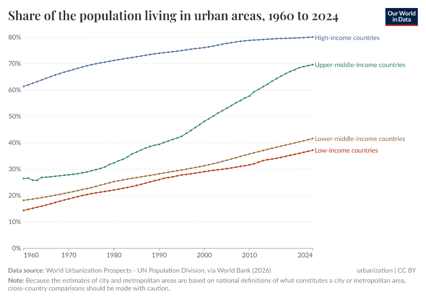 Hannah Ritchie, Veronika Samborska, and Max Roser (2024) - “Urbanization” Published online at OurWorldinData.org. Retrieved from: 'https://mdim-pisa.owid.pages.dev/urbanization' [Online Resource]BibTeX citation
